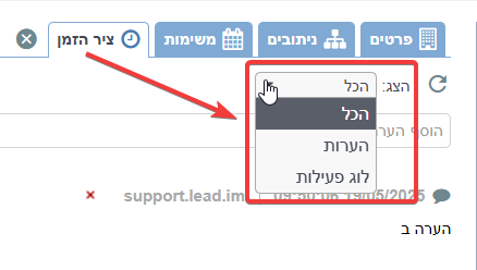 הכל - תצוגה משולבת של הערות + לוג הפעילות.